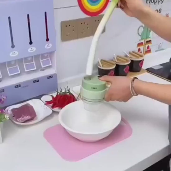 Transform your food prep routine with this multifunctional electric vegetable cutter. Whether you need to chop garlic, mince onions, mash ingredients, or slice veggies, this handheld, wireless gadget does it quickly and efficiently. No more messy chopping or manual slicing — just press and go for uniform results every time!
